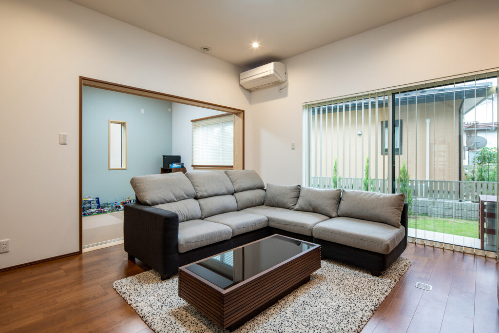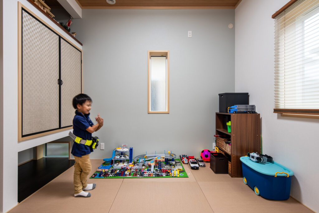 リビングから視線が通じる和室は、お子さまのお昼寝スペースや来客時の控室に。