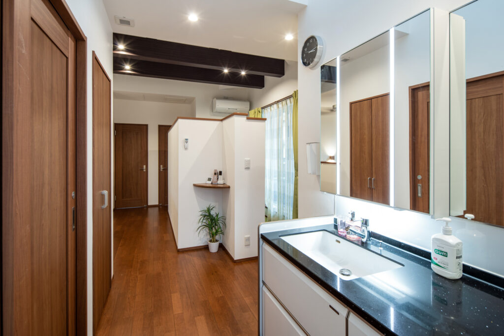 さらに、2階ホールには洗面台を設置し、「階下に降りずに身支度できる」利便性を実現。