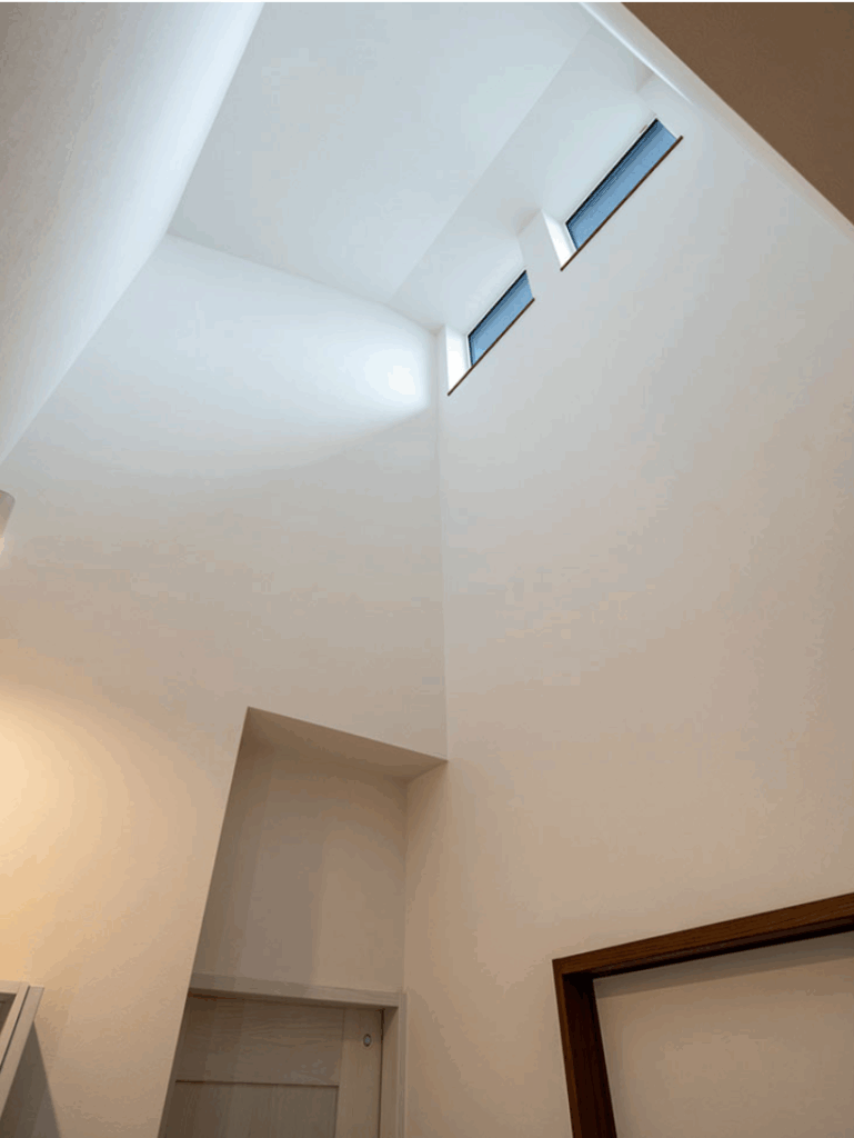 高窓から自然光を取り入れ、日中は照明なしでも明るさを確保。