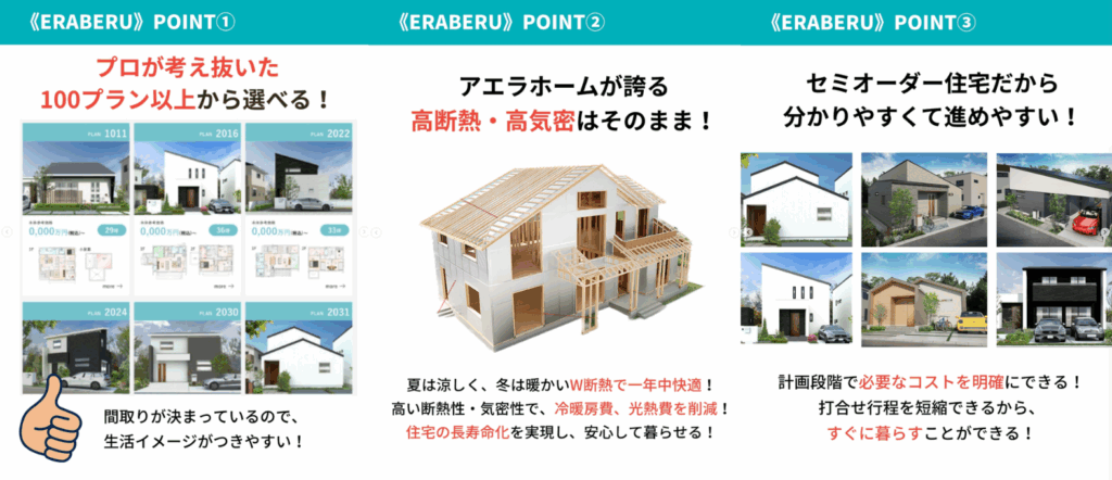 『W断熱×W制震』の高性能住宅を、特別価格で実現できるのは、モニター様限定だからこそ! さらに、アエラホームの【ERABERU】をはじめ、人気プランがモニター特別価格で手に入ります。 地震や寒さに強く、快適で省エネな住まいを、今すぐお得な価格で手に入れましょう。