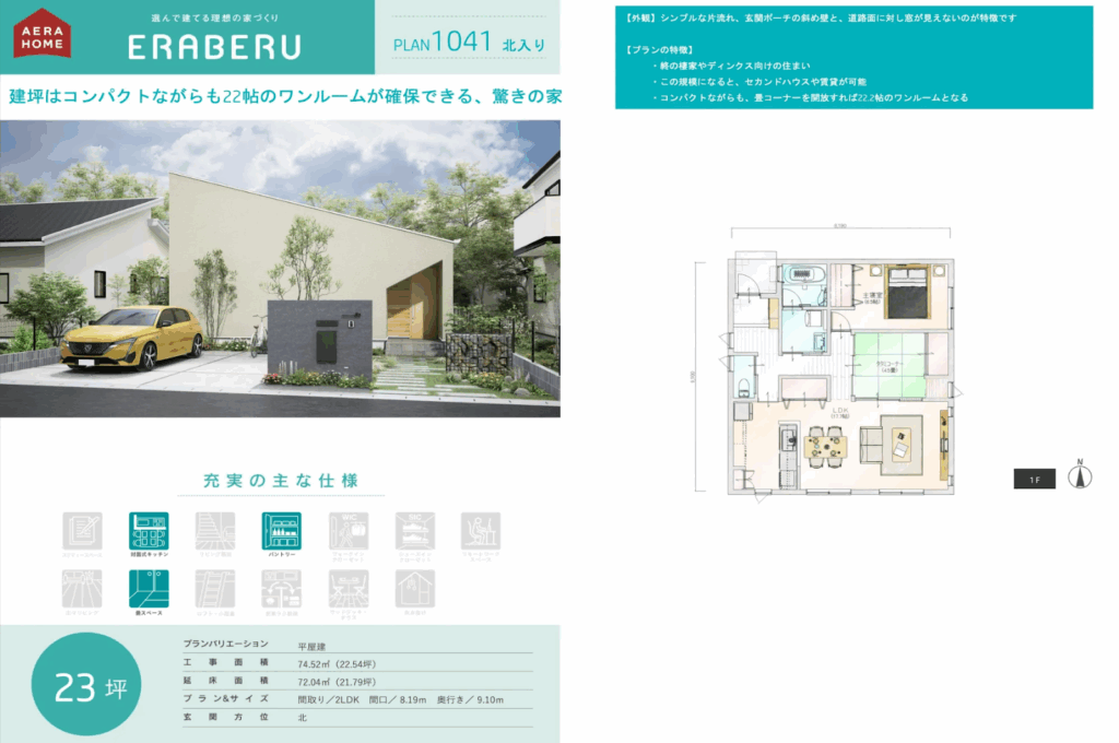 「エラベル」は、100以上のプロ設計プランから理想の住まいを選べる「セミオーダー住宅」です。既存のプランから選ぶことで、打ち合わせや設計時間を大幅に短縮し、スムーズに理想の暮らしを実現できます。