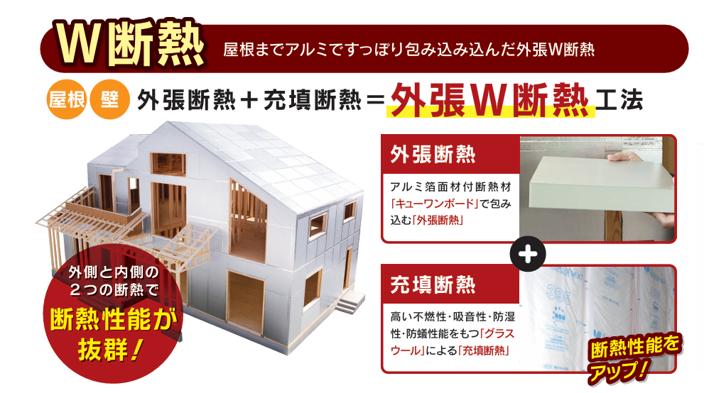 その理由は、2種類の断熱材で『家中まるごと包み込む』から