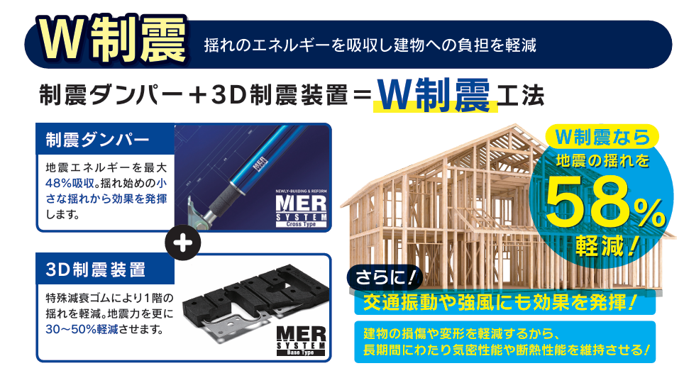 「W制震工法」で、地震対策を万全にした住宅を特別価格で手に入れることができます。