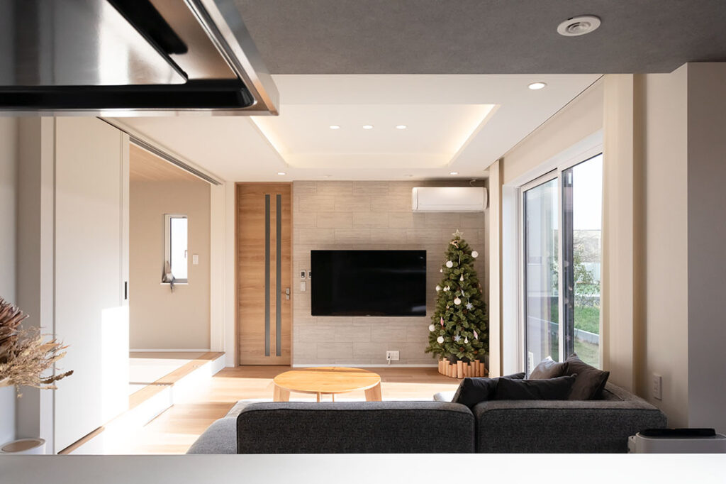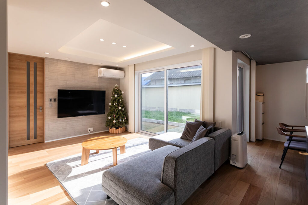 広々としたリビングでも、一年を通じて暑さや寒さが気になることがないそうです。外張りW断熱工法を採用することで、暑さや寒さを感じることなく、家全体が心地よい温度に保たれています。