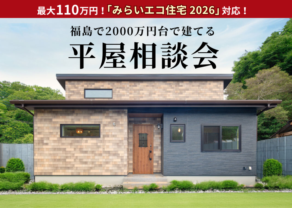 最大110万円の補助金が使える「みらいエコ住宅2026事業」を活用し、2000万円台から建てる高性能な平屋について、専門家に相談できるチャンスです。