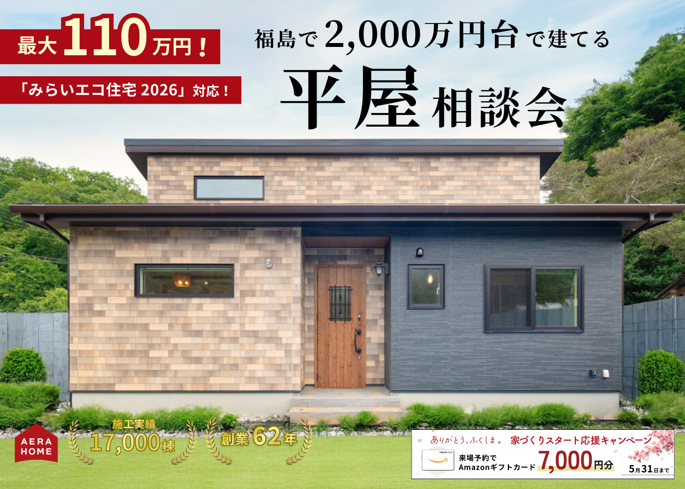 相談会では、補助金の詳細から、福島で「2000万円台から叶える平屋」の家づくりを凝縮してお伝えします。